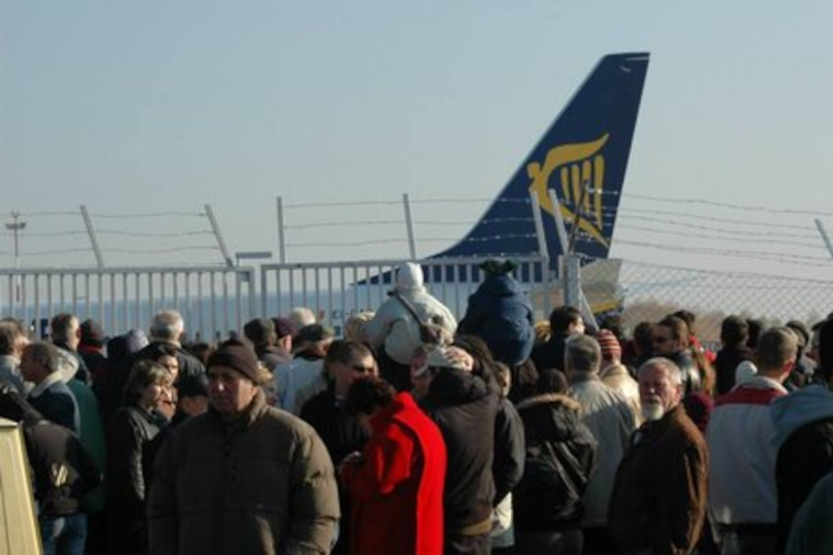 30 października 2005 roku około trzy tysiące mieszkańców Łodzi zgromadziło się wokół lotniska, by być świadkami momentu, który zapisał się w historii miasta. O godzinie 9:20 wylądował pierwszy samolot linii Ryanair, a pasażerów powitano w terminalu lampką szampana. Po czterdziestu minutach maszyna ponownie wzbiła się w powietrze, rozpoczynając rejs powrotny do Londynu z 172 osobami na pokładzie. Wydarzenie to było związane z uruchomieniem pierwszego regularnego połączenia Łódź Lublinek (LCJ) - Londyn Stansted (STN), które - z przerwą spowodowaną pandemią - funkcjonuje do dziś. Aby umożliwić obsługę samolotów pasażerskich klasy Boeing 737, wykorzystywanych przez Ryanair, na lotnisku w Łodzi wydłużono drogę startową z 1 443 m do 2 100 m (a rok później do 2 500 m) oraz wybudowano terminal nr 2. Obiekt ten miał służyć jedynie przez trzy lata, jednak pozostawał w użytku aż do 2012 roku, kiedy otwarto docelowy, nowy terminal. Wcześniej podejmowano próby uruchomienia stałych połączeń m.in. do Warszawy (LOT), Kolonii (European Air Express) czy Kopenhagi (Cimber Air), jednak funkcjonowały one jedynie przez krótki czas. Wsparcie